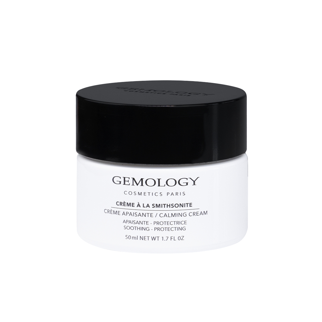 Découvrez la Crème visage à la Smithsonite, le soin bouclier développé par Gemology pour les peaux sensibilisées et fragilisées.